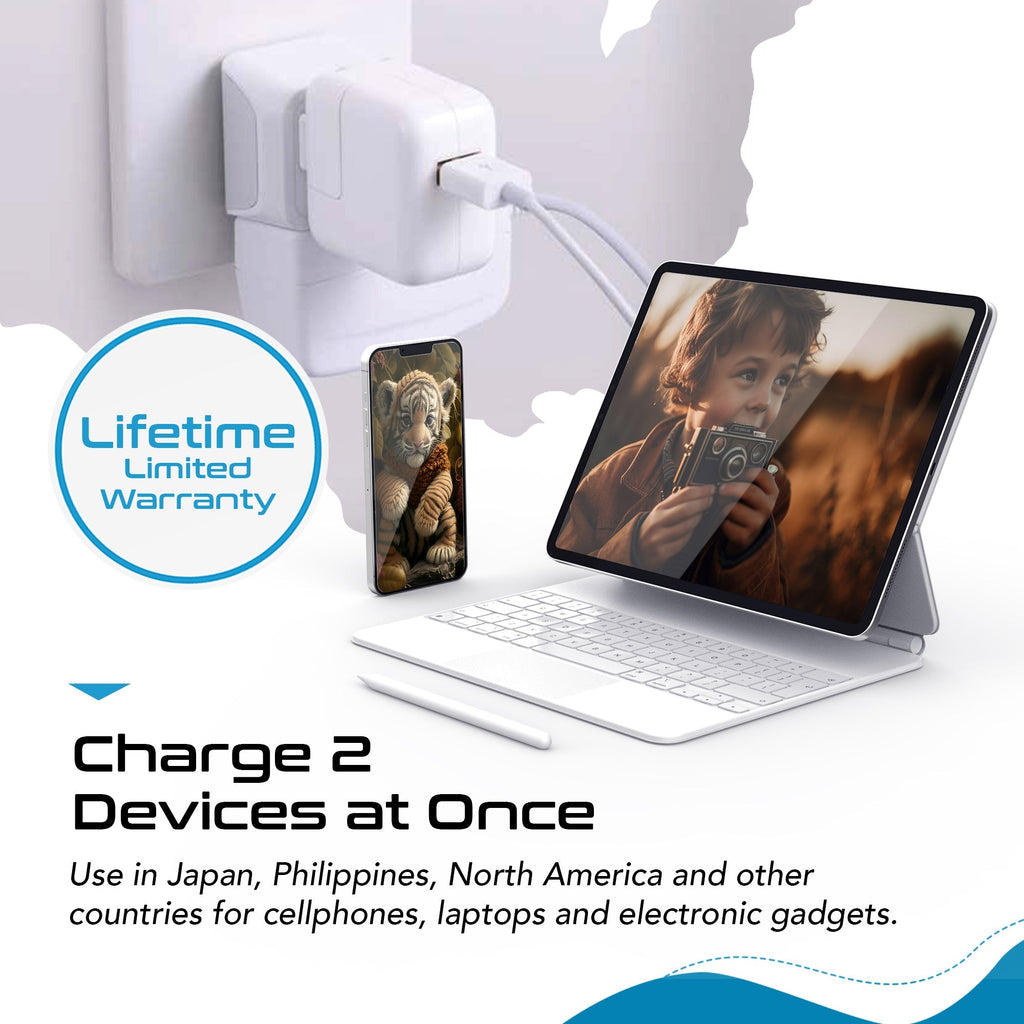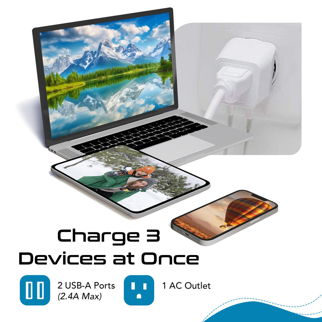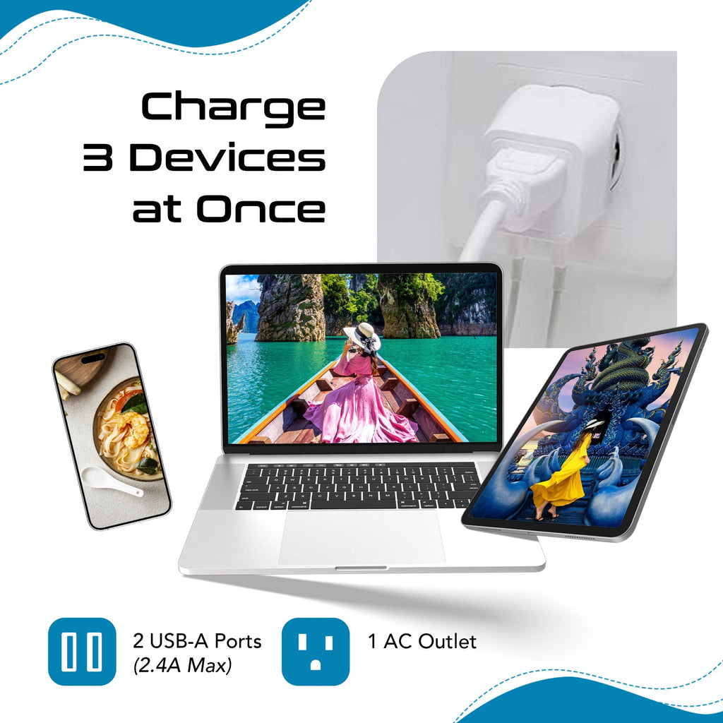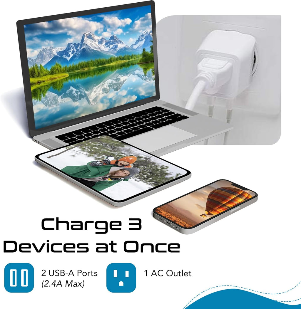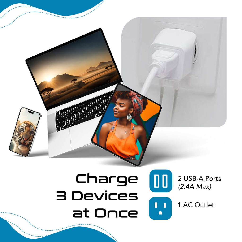 World-Way 6 Travel Adapter Kit | 2 USB + 2 US Outlets - Grounded (WPS-2B)