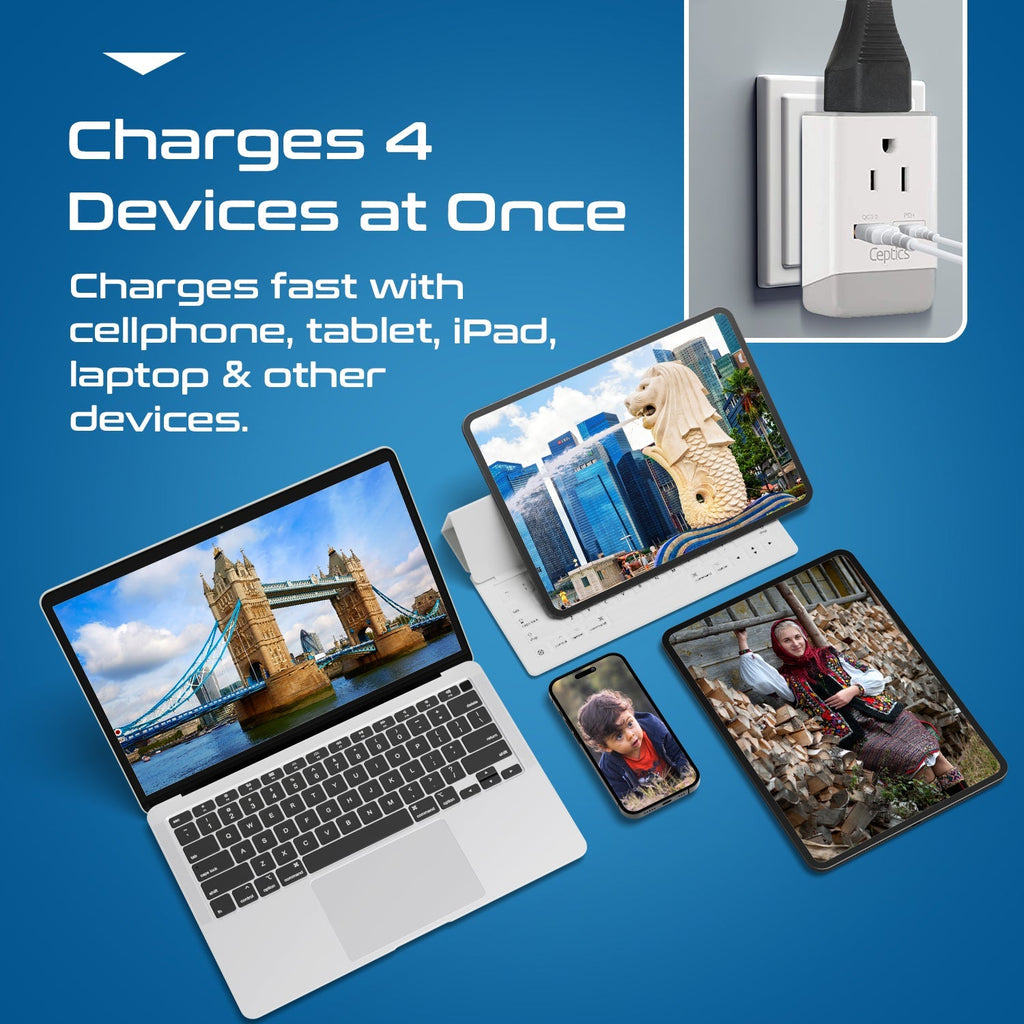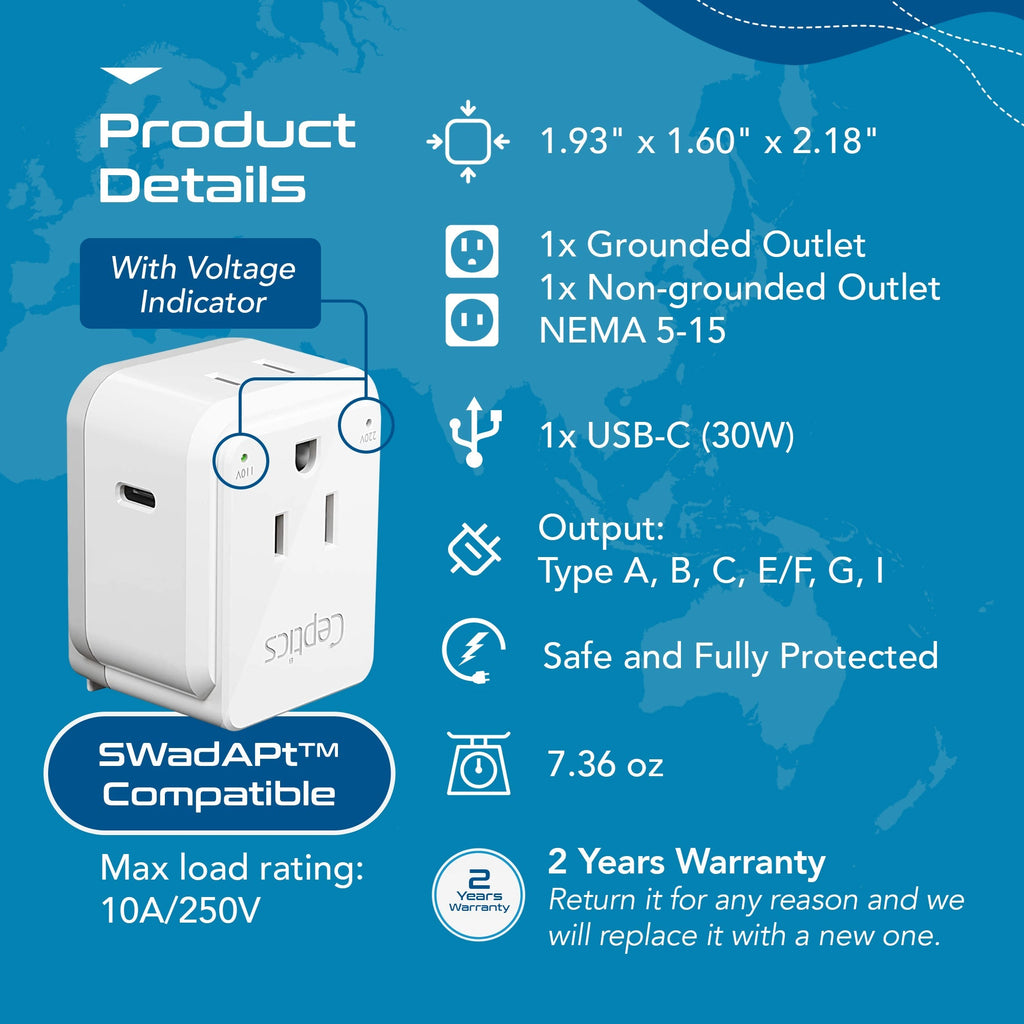 Travel Adapter Set | Type A, B, C, E/F, G, I - USB-C Port with PD + 2 US Outlets (PAK-30-WS)