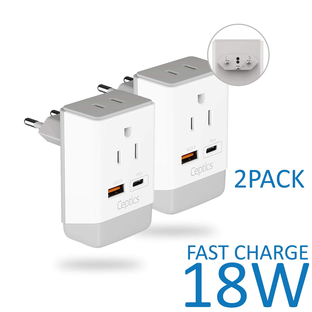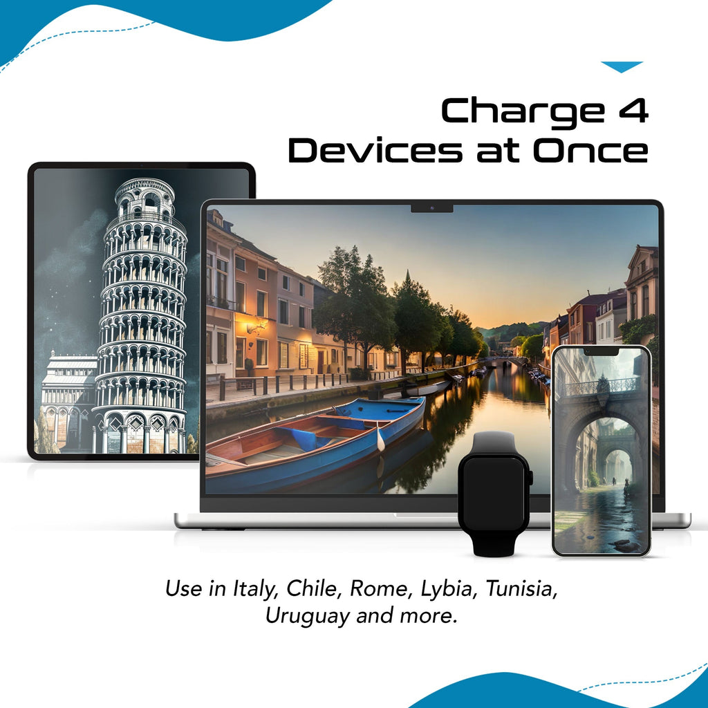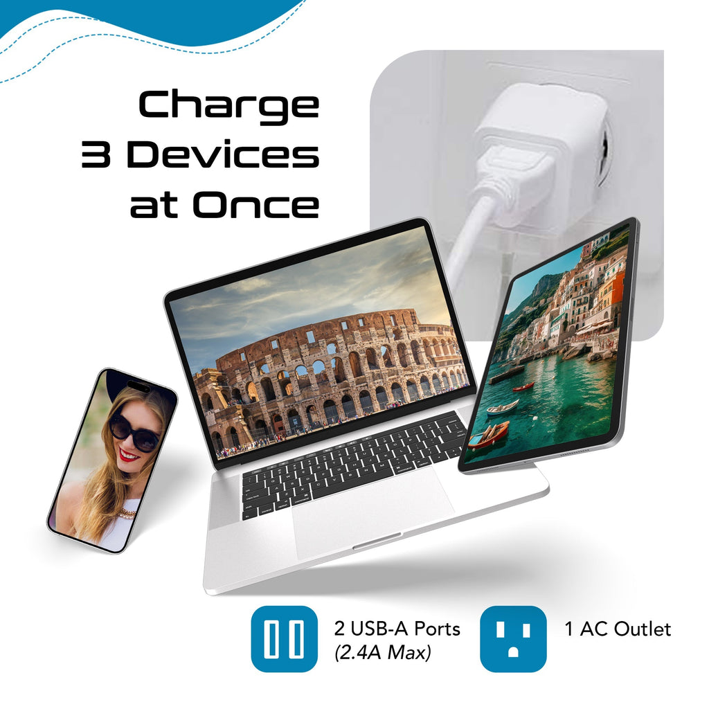 Italy, Chile Travel Adapter Set | Type C, L - USB & USB-C Ports + 2 US Outlets (PAK-IT)