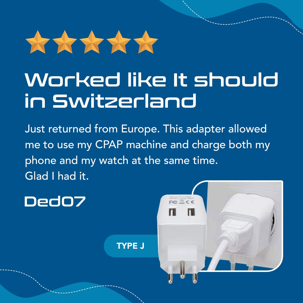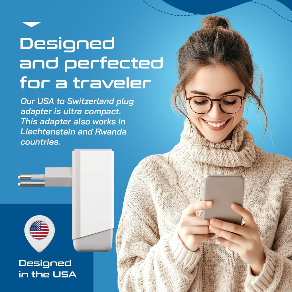 Switzerland Travel Adapter | Type J - USB-A & USB-C Ports + 2 USA Outlet (AP-11A)