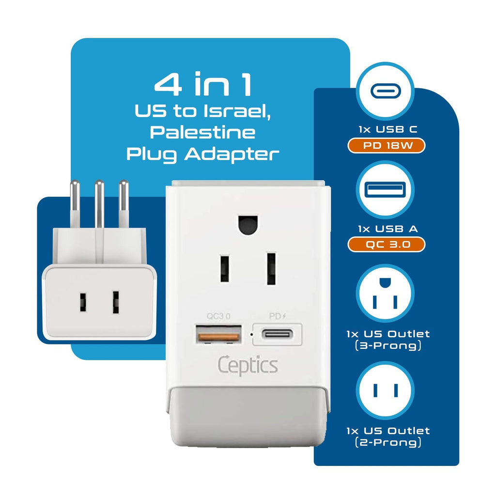 Israel, Palestine Travel Plug Adapter - Type H - 5 in 1 - Ultra Compact (PTU-14)