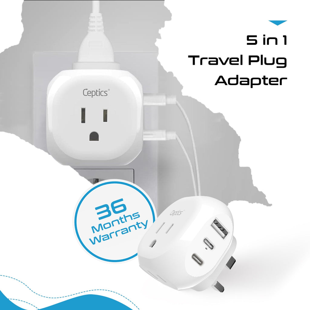 UK, England Travel Adapter Plug - Type G - 5 in 1 - Ultra Compact (PTU-7)