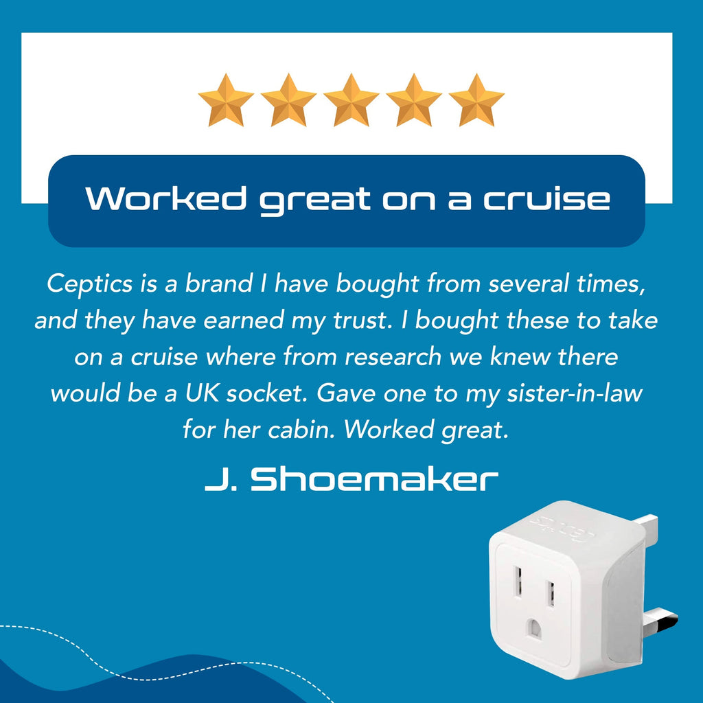 South Africa to UK - Type G - Travel Plug Adapter - Grounded (SA-UK)