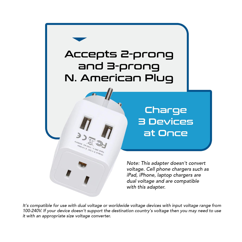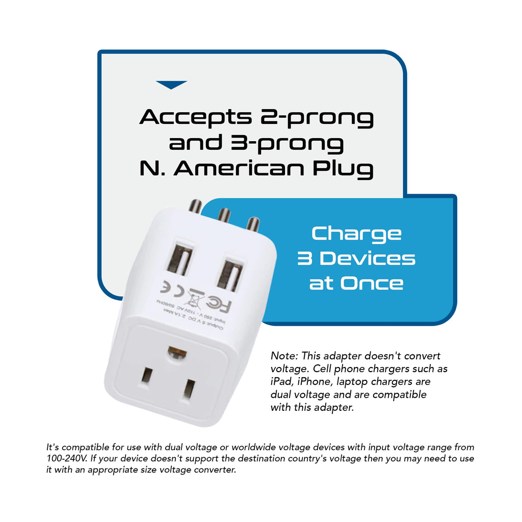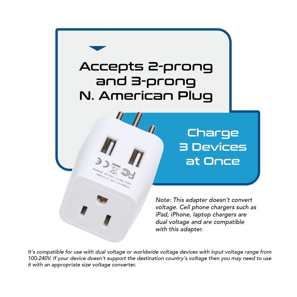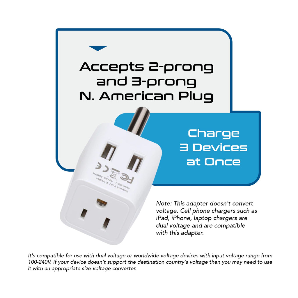 USA Travel Adapter - Type B - 4 in 1 - 2 USB Ports (GP4-5)