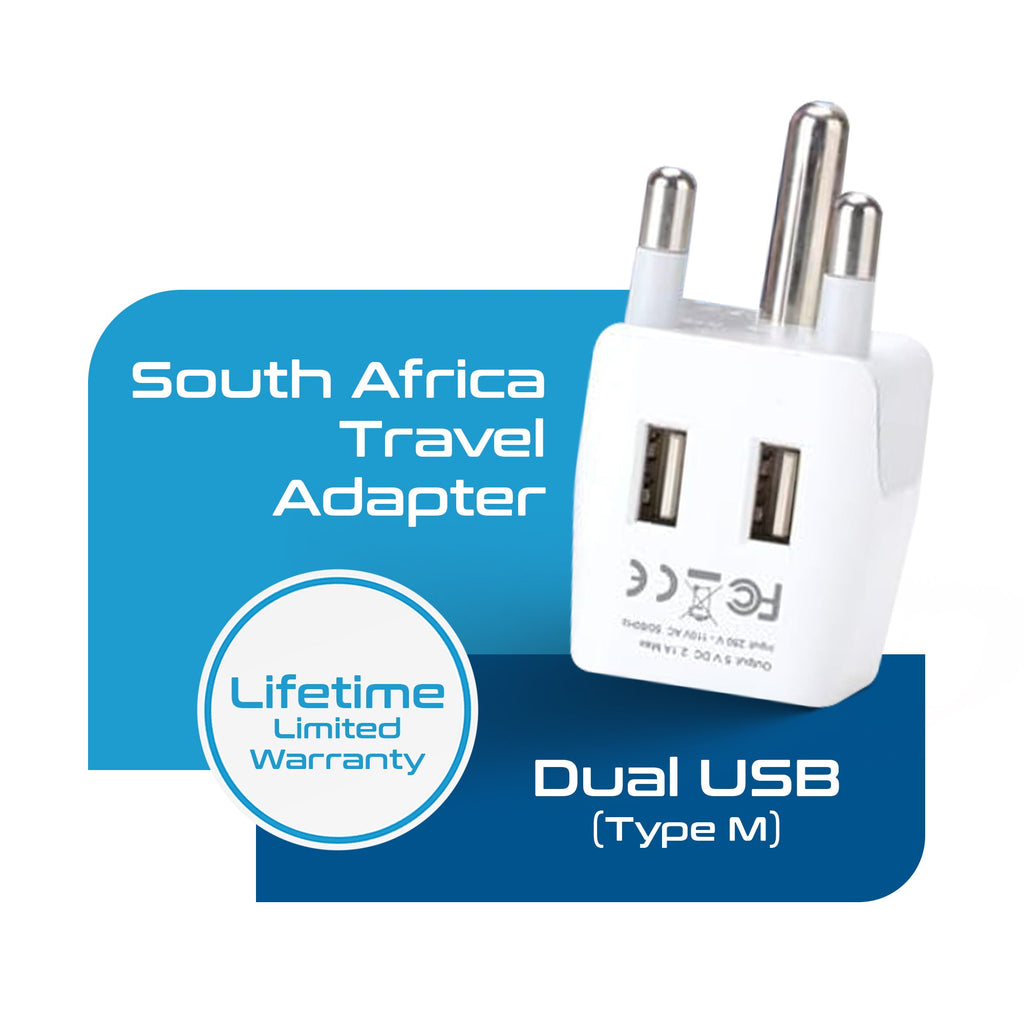 South Africa Travel Adapter - Type M - Dual USB (CTU-10L)