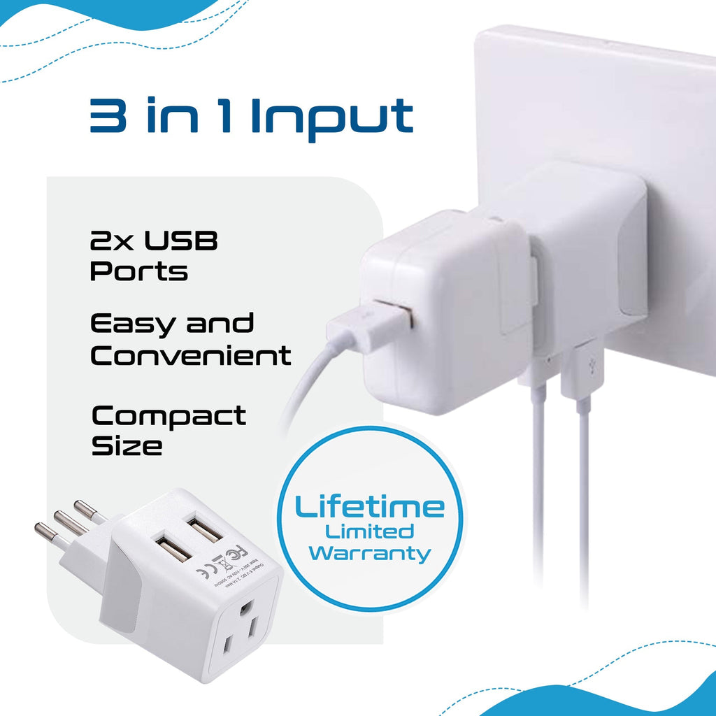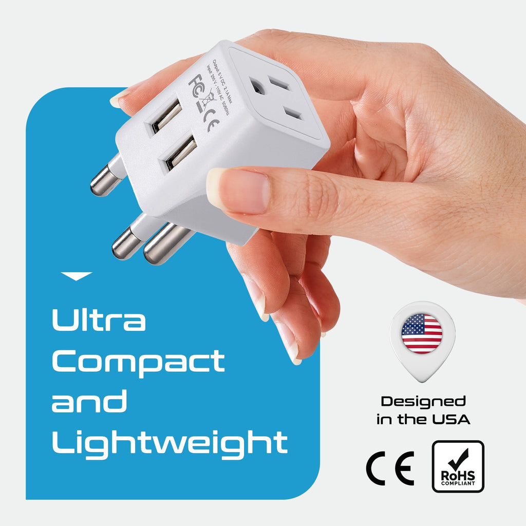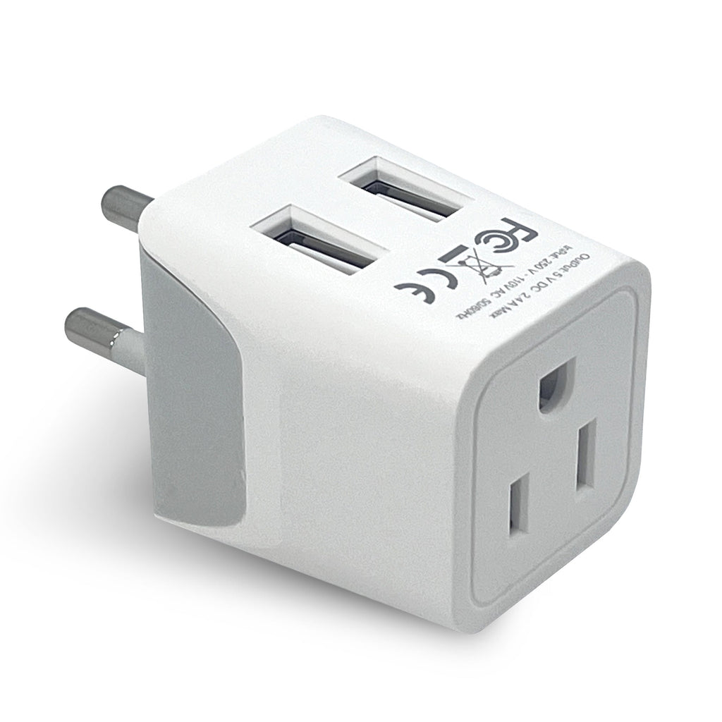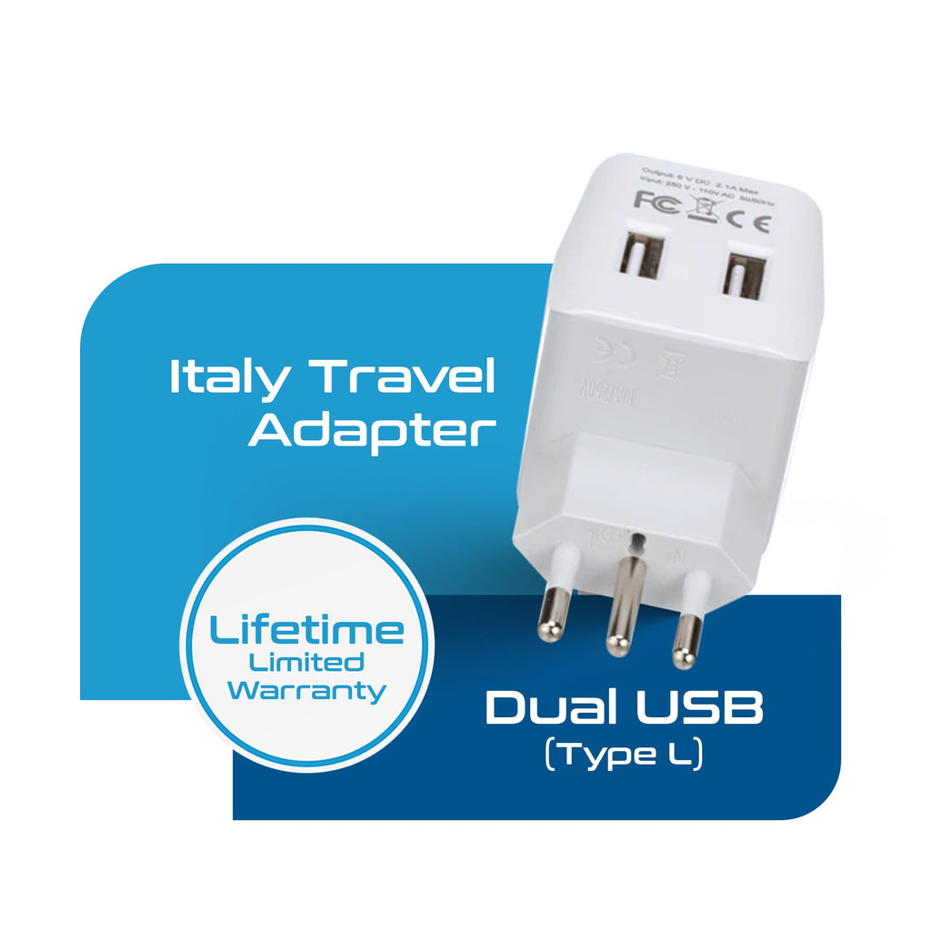 Italy Travel Adapter Plug Combo - Type C, L | Dual USB - Italian Combo (CTU-12-9C)