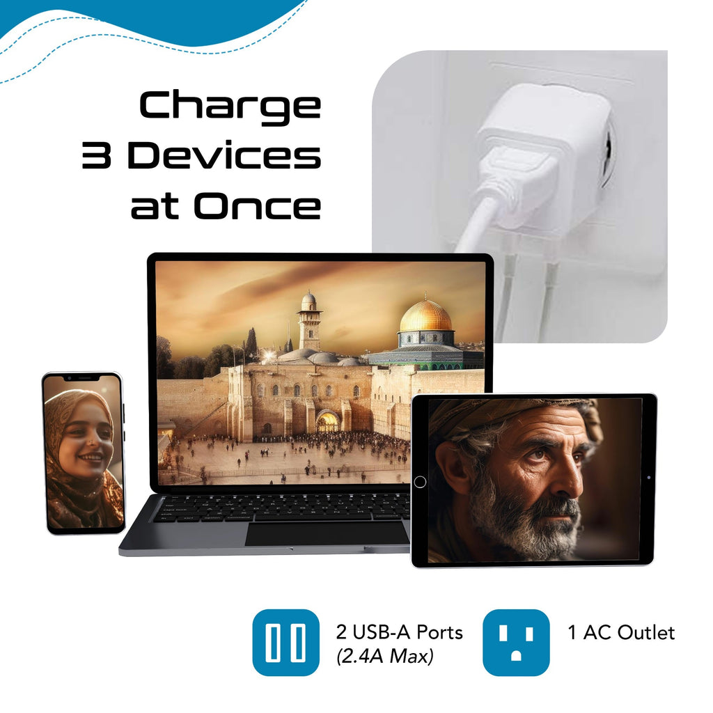 Israel, Palestine Adapter Plug Combo- Type H, C | Dual USB - Israeli Combo (CTU-9C-14)