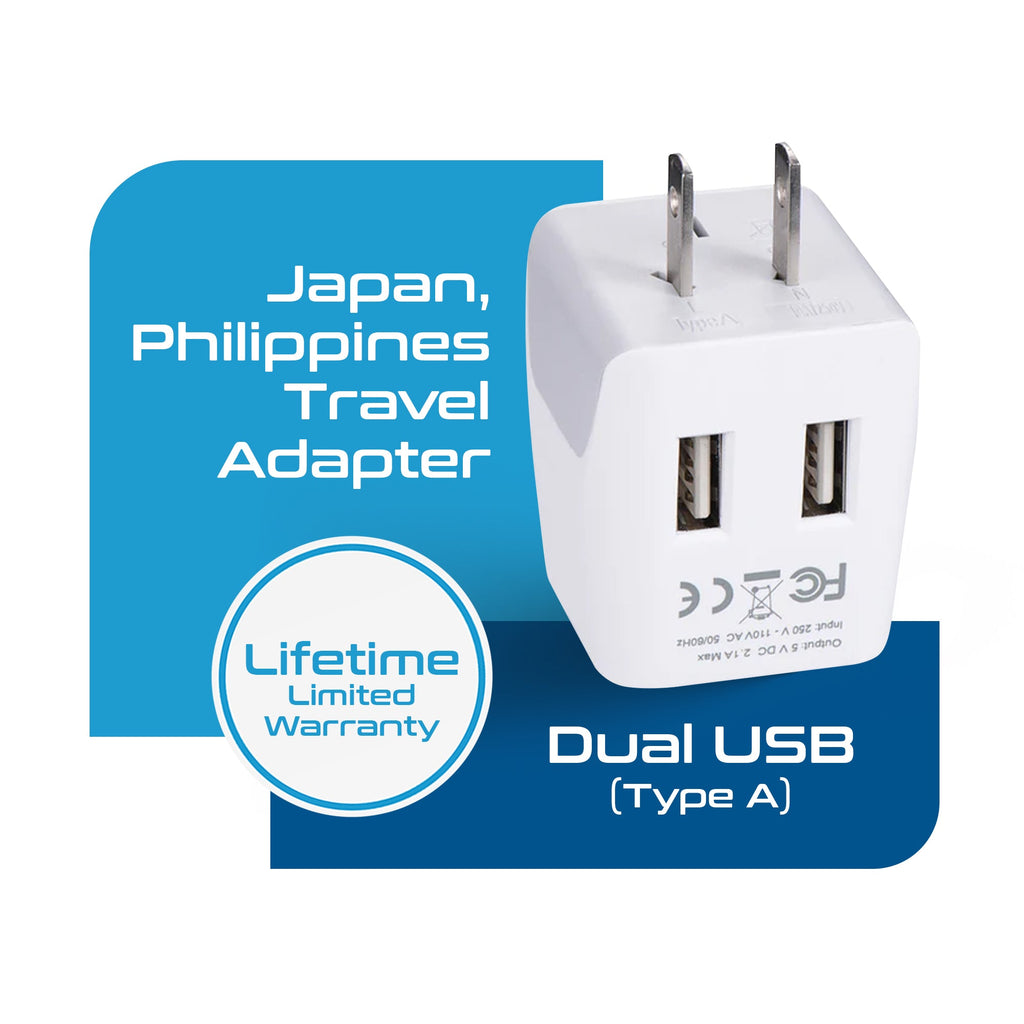 Japan, Philippines Travel Adapter - Type A - Dual USB (CTU-6)