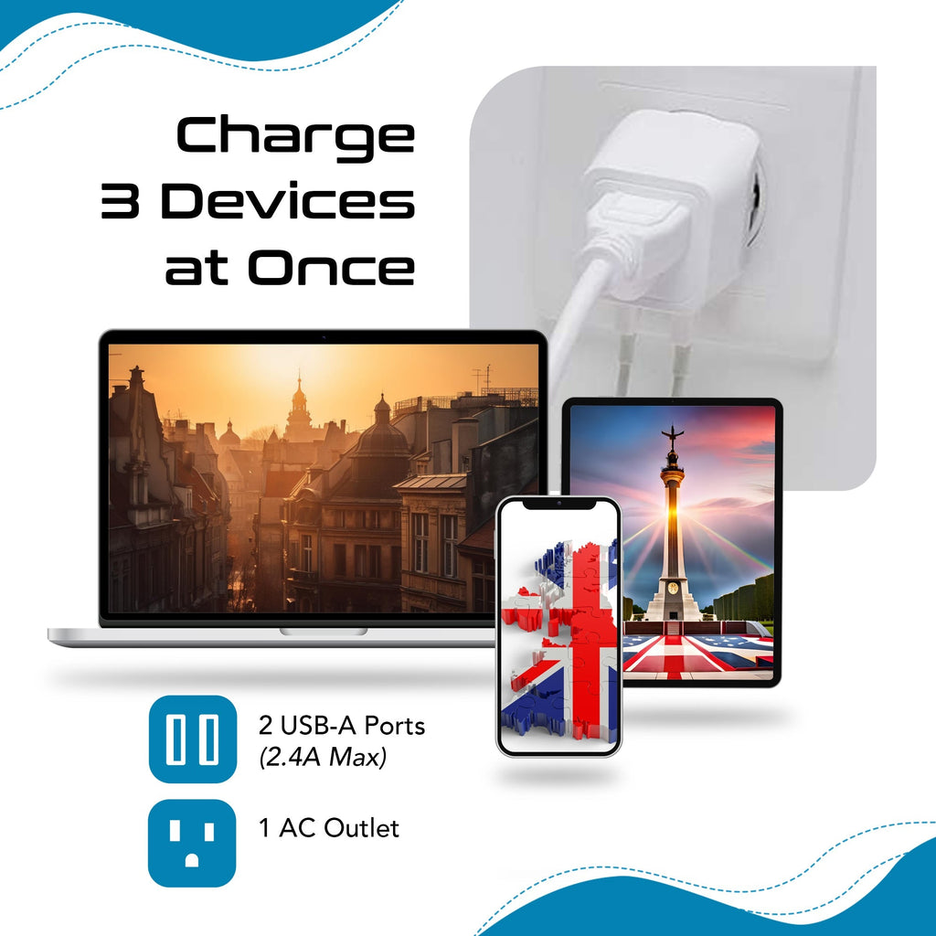Travel Adapter Kit | Type C, E/F, G - USB & USB-C Ports + 2 US Outlets (PAK-EU)