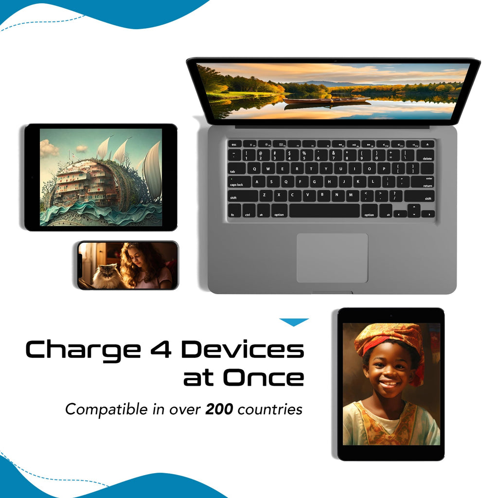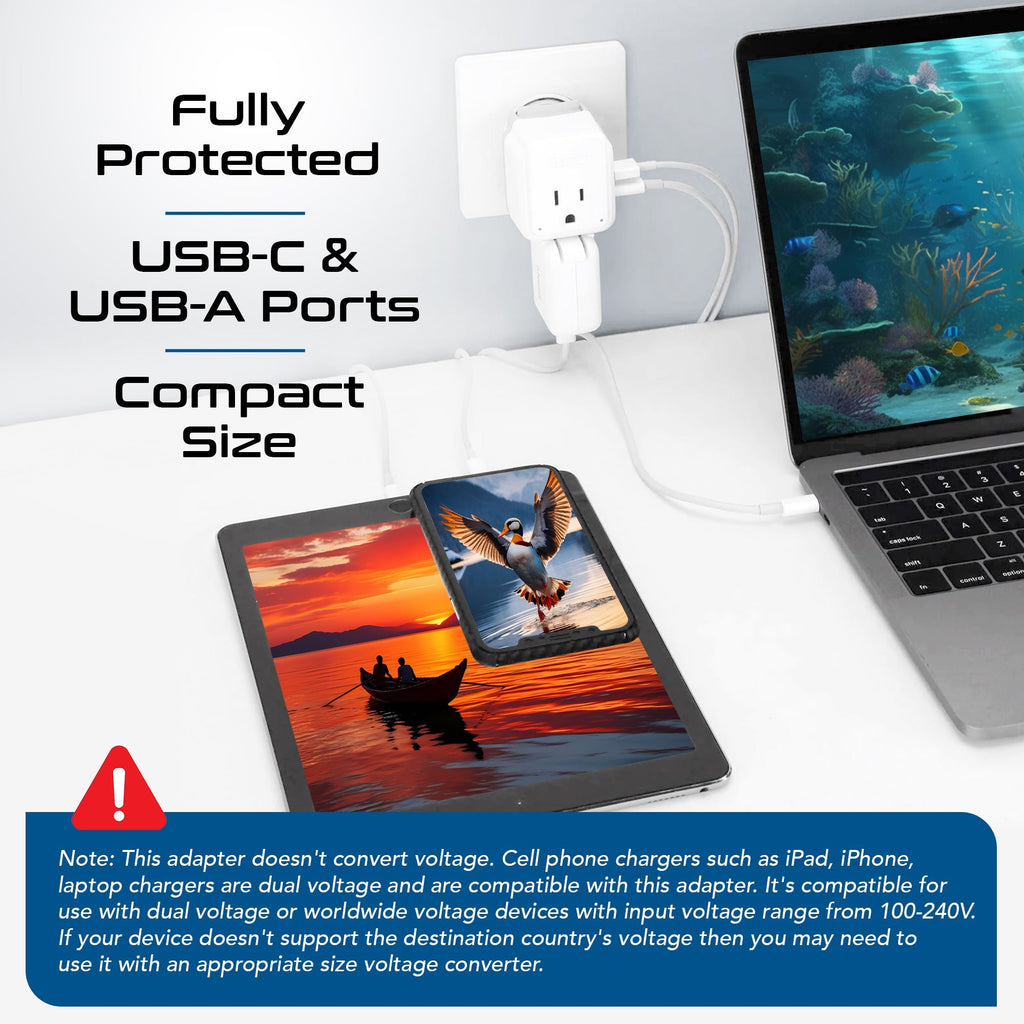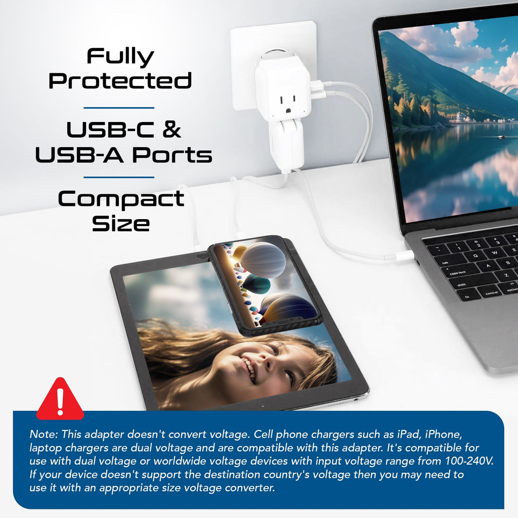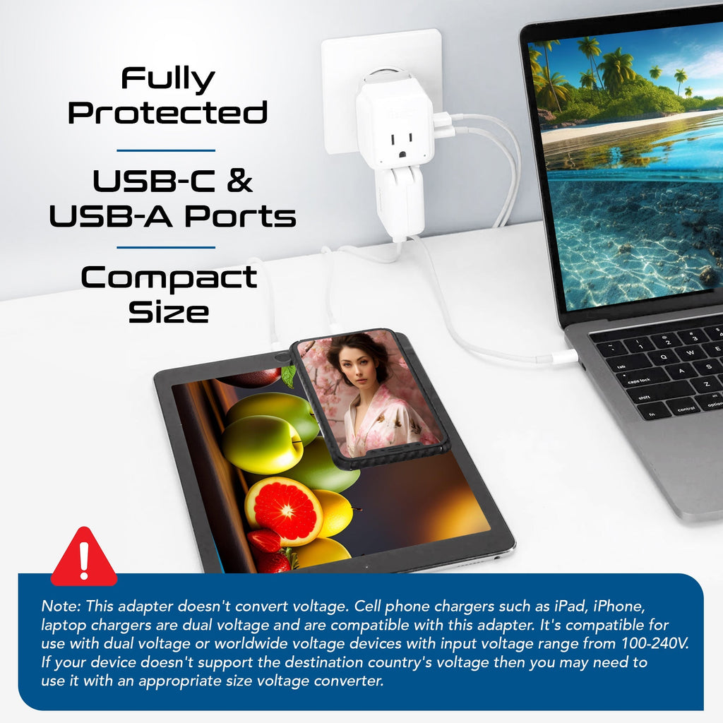 World-Way 6 Travel Adapter Kit | 2 USB-A + 2USB-C + 2 US Outlets - Grounded (WPS-5B)