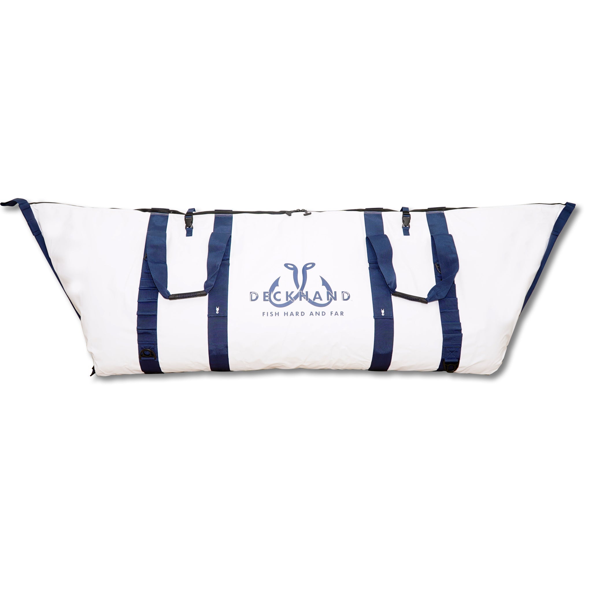 - Top clip straps to hold the top of bag tight for easy zipper closure of the bag once fish and ice are inside, reducing stress on the zipper pull and teeth.