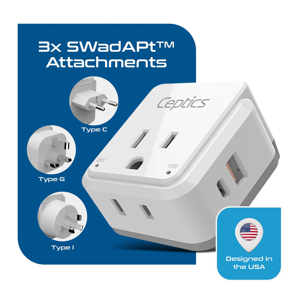 Ceptics Small Size Worldwide International Travel Plug Adapter Kit- 150+ Countries (UP-3K-1)