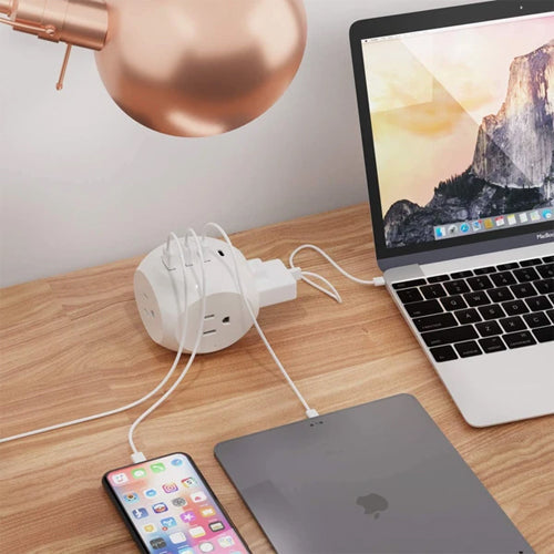 21W Power Strip - Small & Compact - Grounded Dual USB + USB-C - 3 USA Input (PS-3B4U-21W)