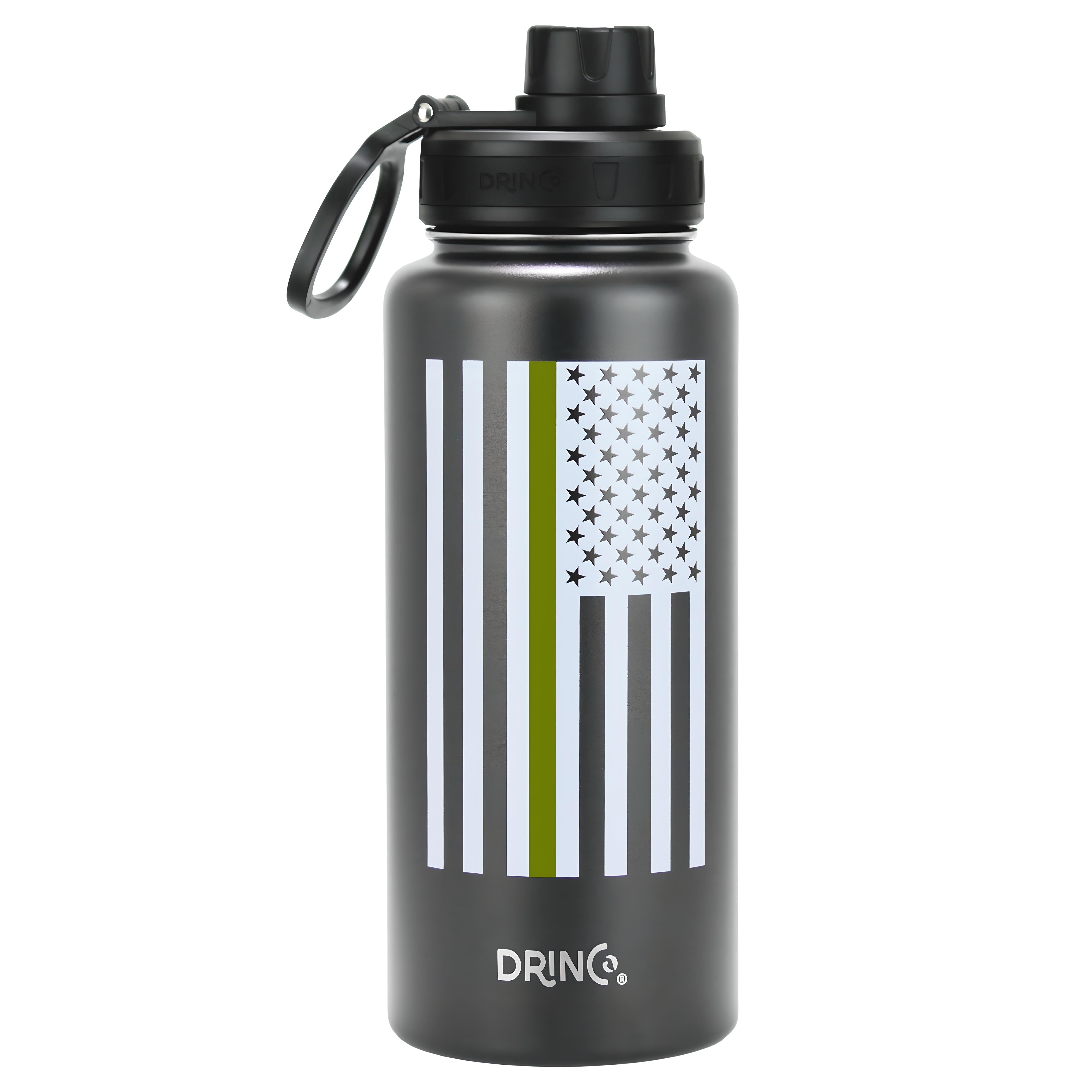 DRINCO® 32oz Stainless Steel Water Bottle-Thin Green-Black